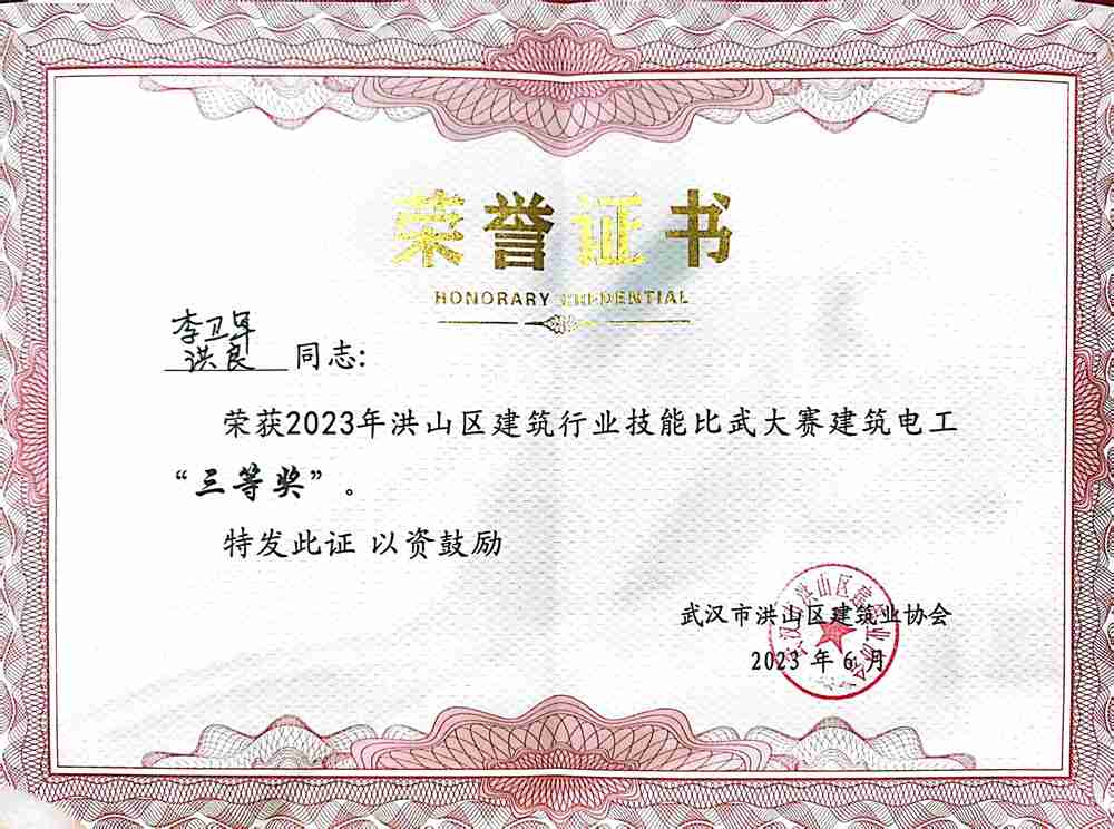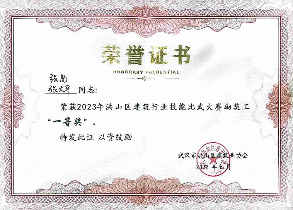 經(jīng)過一上午的激烈角逐,大賽成功決出個人和團(tuán)體獎項(xiàng)。集團(tuán)公司張虎和張大平兩位同志榮獲2023年洪山建筑行業(yè)技能比武大賽砌筑工“一等獎”,集團(tuán)公司李衛(wèi)軍和洪良兩位同志榮獲2023年洪山建筑行業(yè)技能比武大賽電工“三等獎”,區(qū)領(lǐng)導(dǎo)還為集團(tuán)公司頒發(fā)了2023年洪山建筑行業(yè)技能比武大賽“優(yōu)秀企業(yè)獎”。